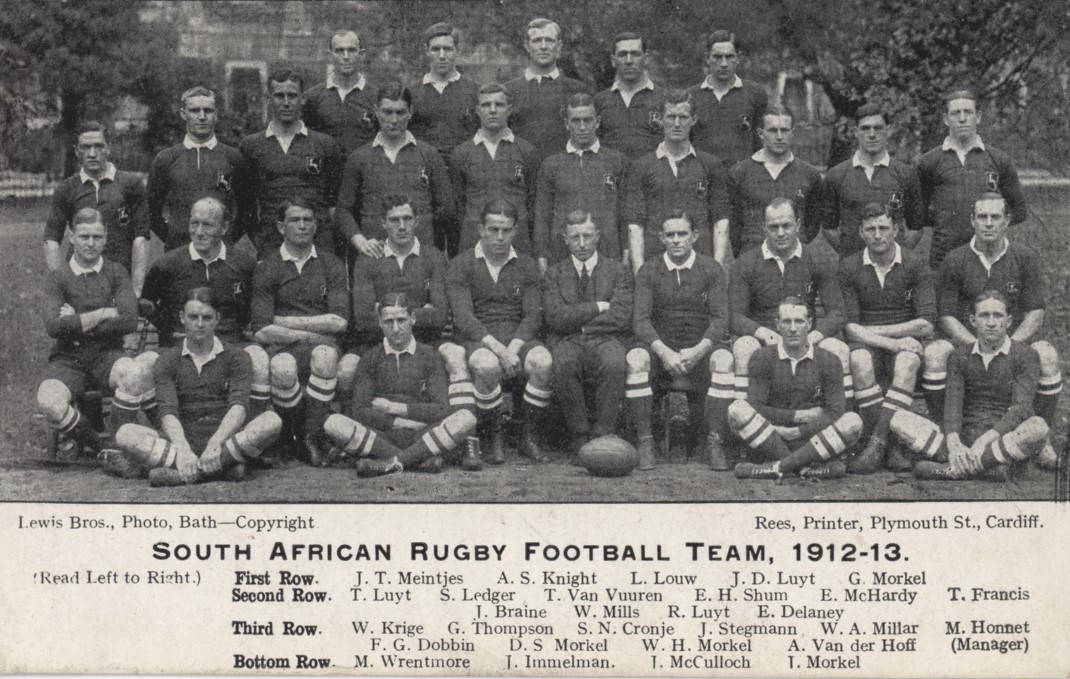 Postcard. Photograph of the South Africa Rugby Union Touring Team 1912-13, with names to front.