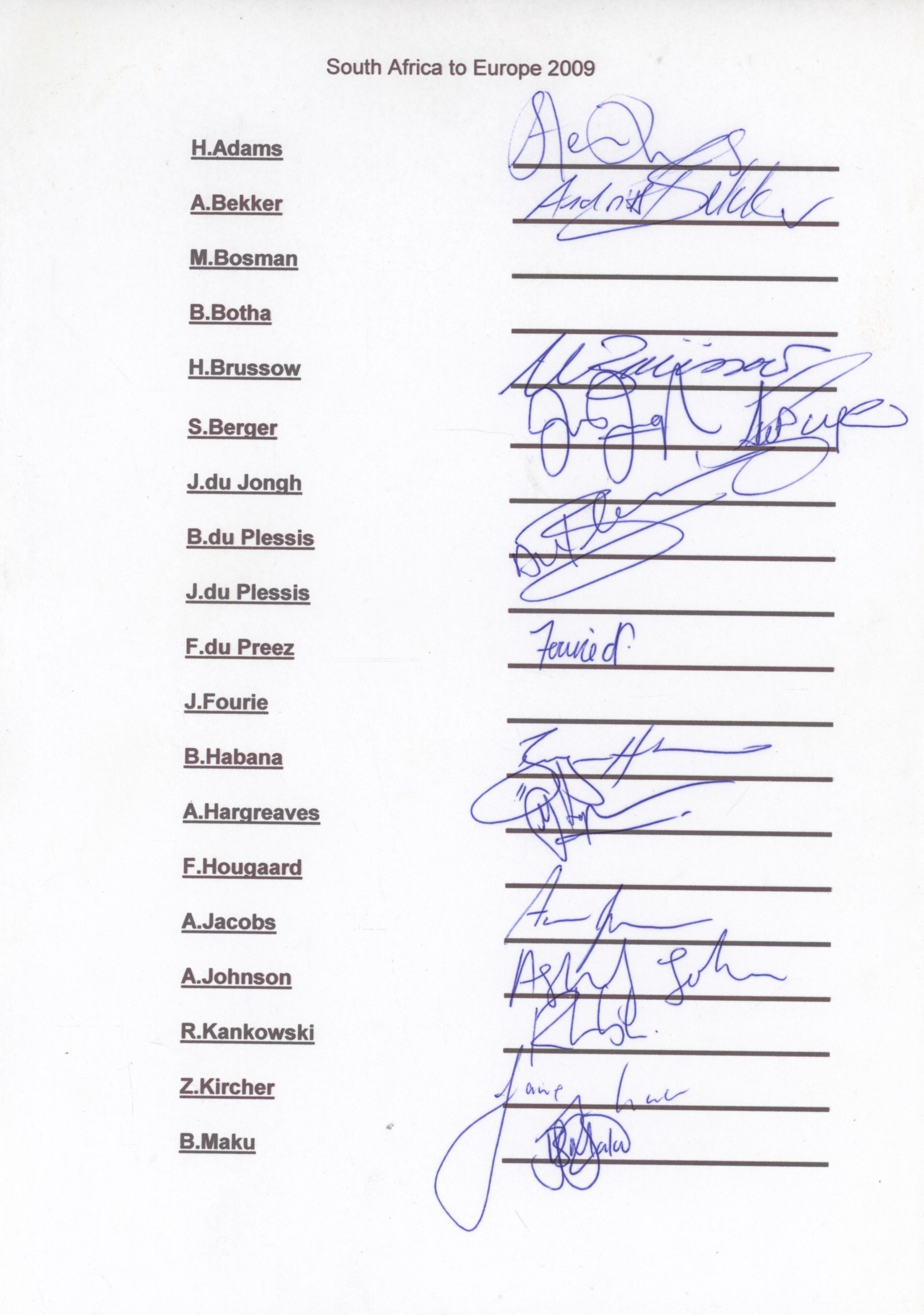 Rugby Union » Rugby Union Autographs » General Rugby Autographs » SOUTH AFRICA 2009 (TOUR TO EUROPE) RUGBY UNION AUTOGRAPHS
