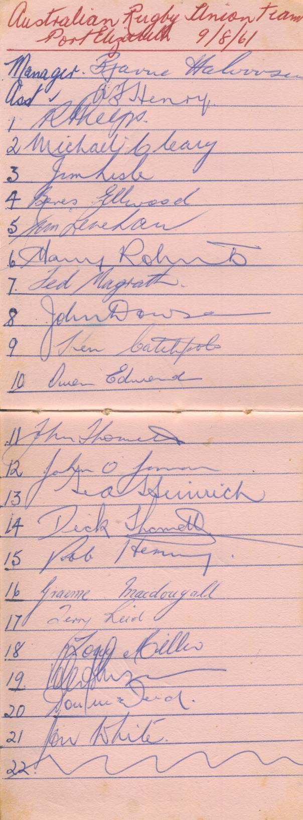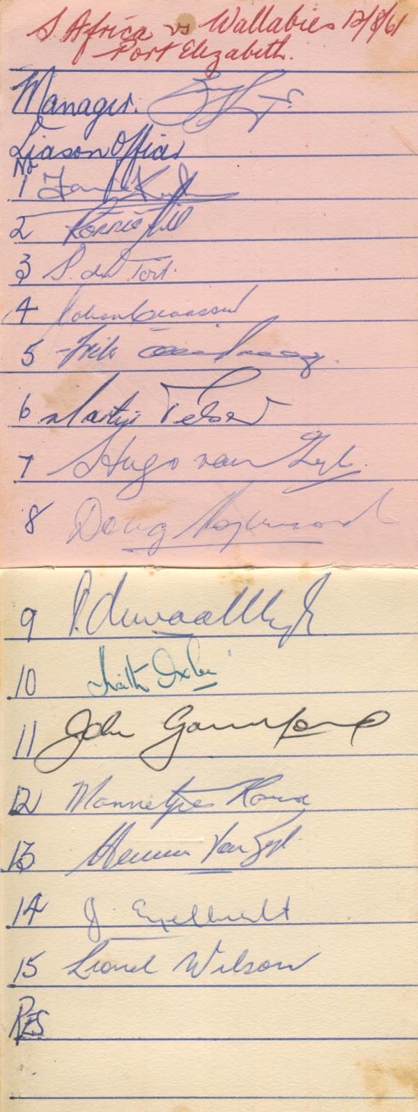 Rugby Union » Rugby Union Autographs » General Rugby Autographs » SOUTH AFRICA & AUSTRALIA 1961 RUGBY AUTOGRAPHS (BOTH TEAMS)