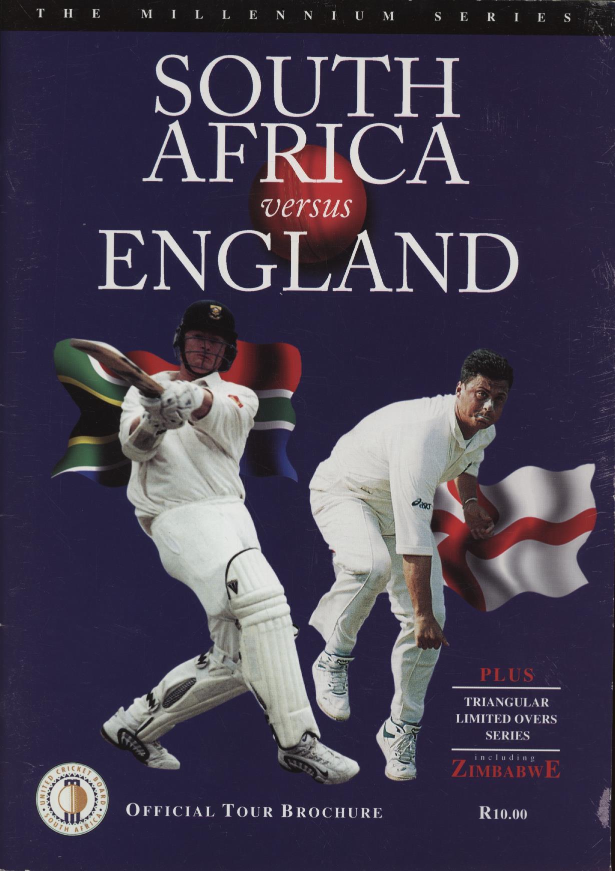 Pre-tour cricket brochure covering the England tour of  South Africa in 1999-2000. This also included the Triangular limited overs series with Zimbabwe.