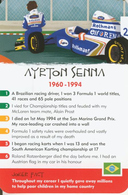 The aim of the game is simple: win the game by winning the cards and win the cards by knowing the facts. Six facts range in difficulty from green, easiest, to red, most difficult. If you choose, however, you can use the seventh, the Joker fact, to overrule them all!