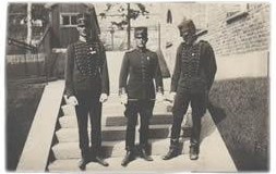 Real photographic image of Lilliehoek, Asbrink and de Laval (all Sweden) who won gold, silver and bronze respectively in the Modern Pentathlon at the Stockholm Olympic Games, 1912. Postally unused. Very good condition.