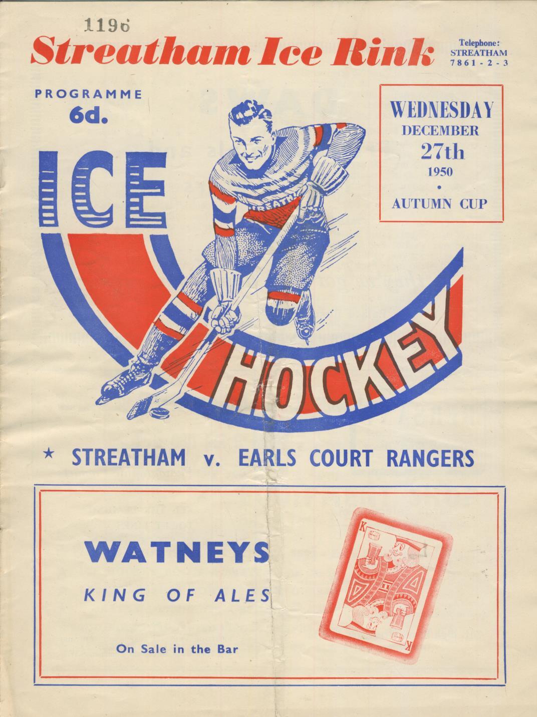 STREATHAM V EARLS COURT RANGERS 1950-51 ICE HOCKEY PROGRAMME