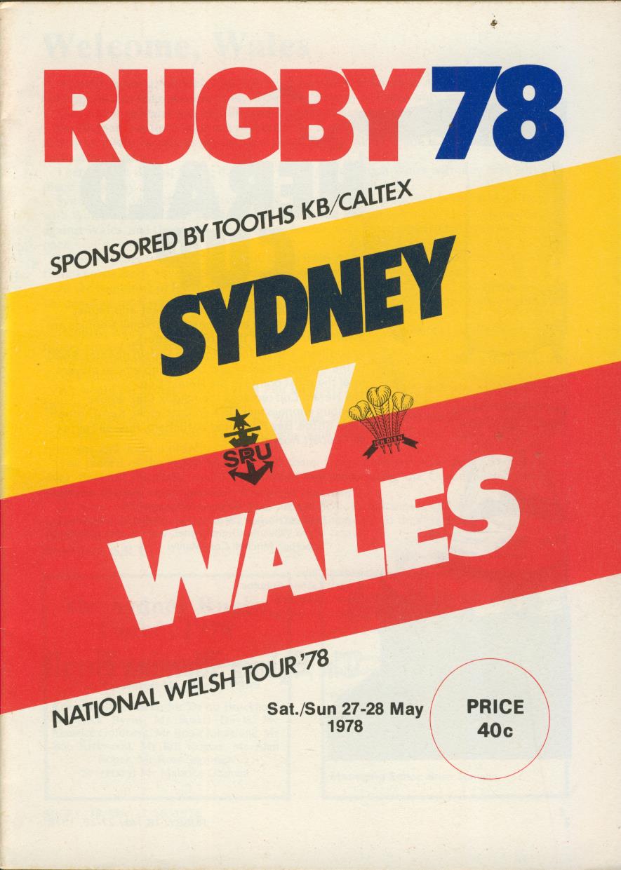 SYDNEY V WALES 1978 RUGBY PROGRAMME