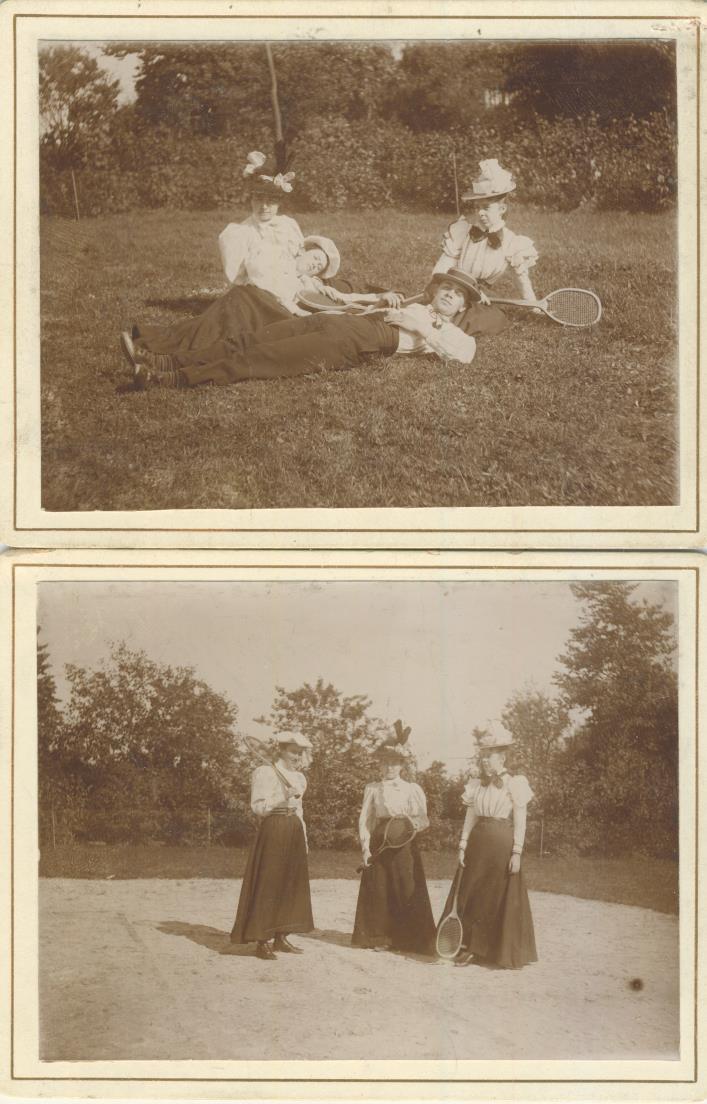 TENNIS GROUPS AT CHATEAU DE SAINT VITU, BELGIUM, 1897 - 2 PHOTOGRAPHS