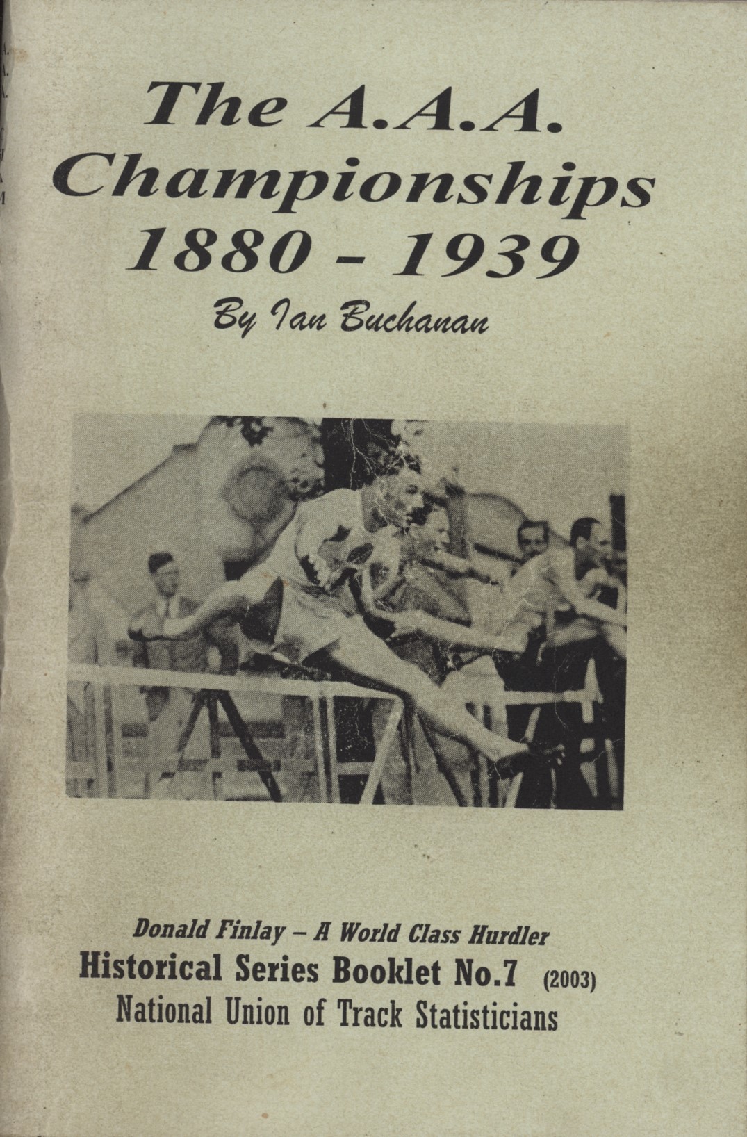 National Union of Track Statisticians Historical Series Booklet No.7, bringing together the results for the Amateur Athletics Assosciation Championships from their beginning up to the outbreak of World War Two and featuring an index of competing athletes.