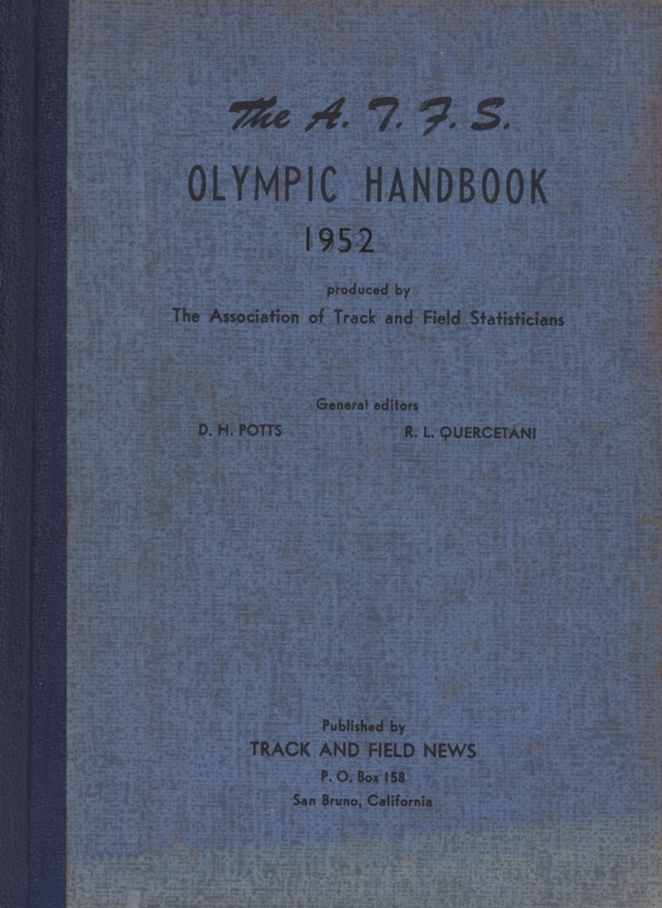 Second edition of the Handbook on Olympic Games Track and Field Athletics of 1948. Contains a comprehensive list of IAAF world and Olympic records up to 1952. The most impressive section is the "All Time World List", which contains details of up to 100 of the world's best performances in each discipline - a statistician's dream.