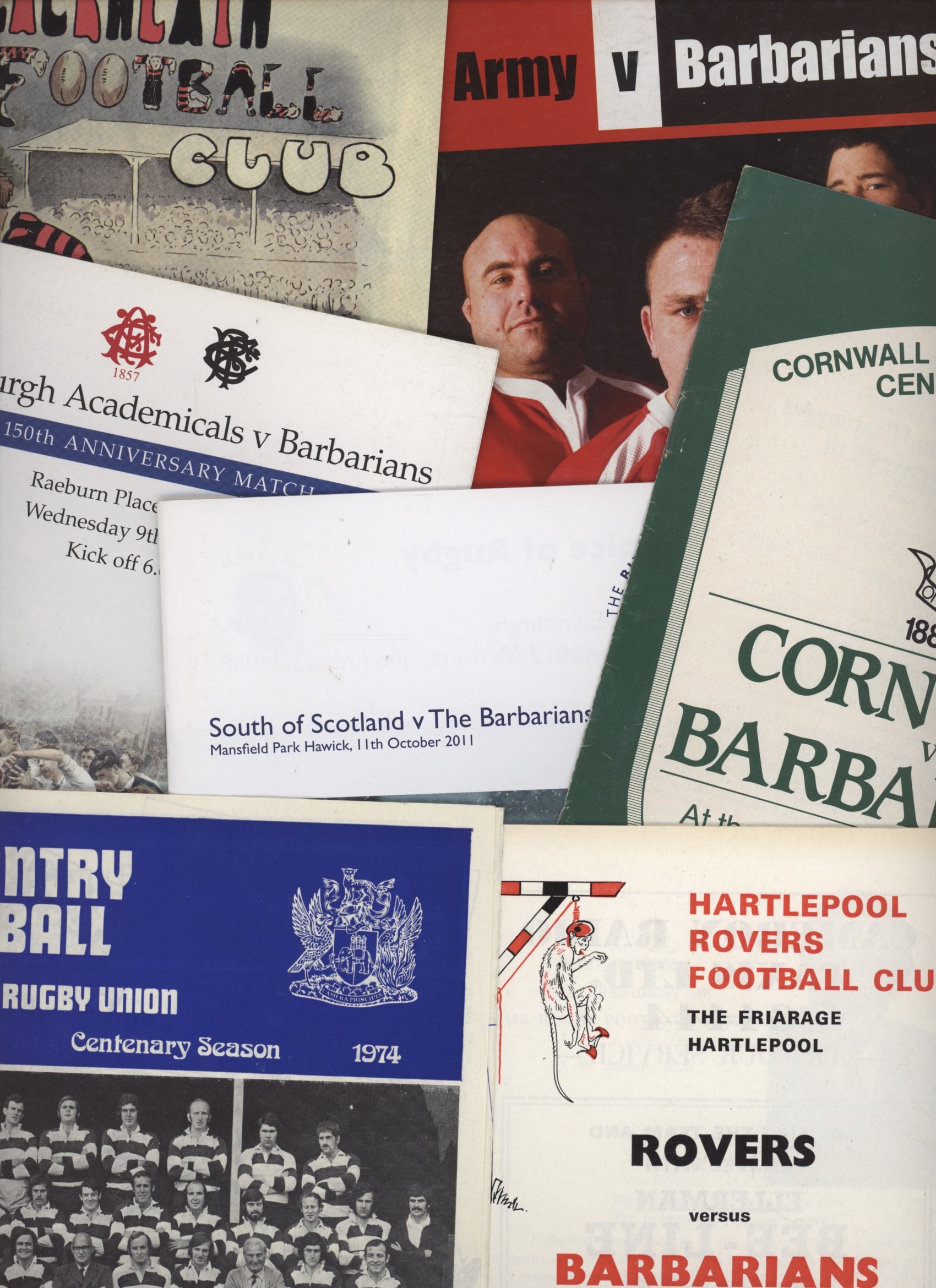 THE BARBARIANS  RUGBY UNION PROGRAMMES 1965-2011 (X 14)