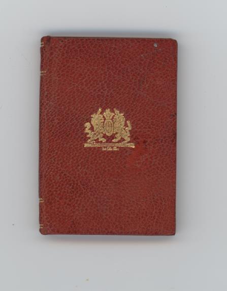 6.5 x 4.5cms. 19pp. Red-calf bound boards with gilt insignia to front and gilt title to spine. Very good condition.