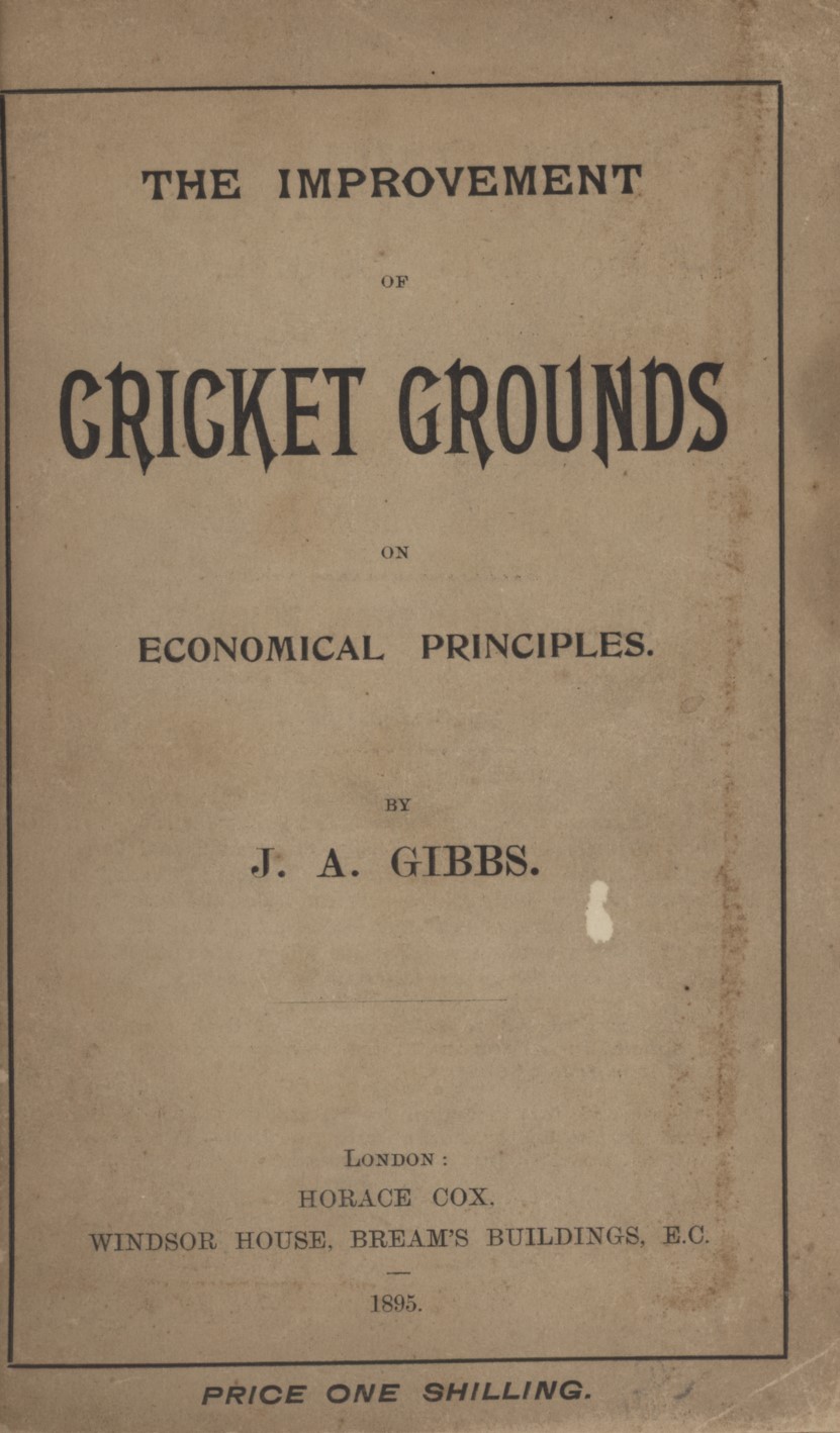 Cricket » Cricket Books » General Cricket » THE IMPROVEMENT OF CRICKET GROUNDS ON ECONOMICAL PRINCIPLES