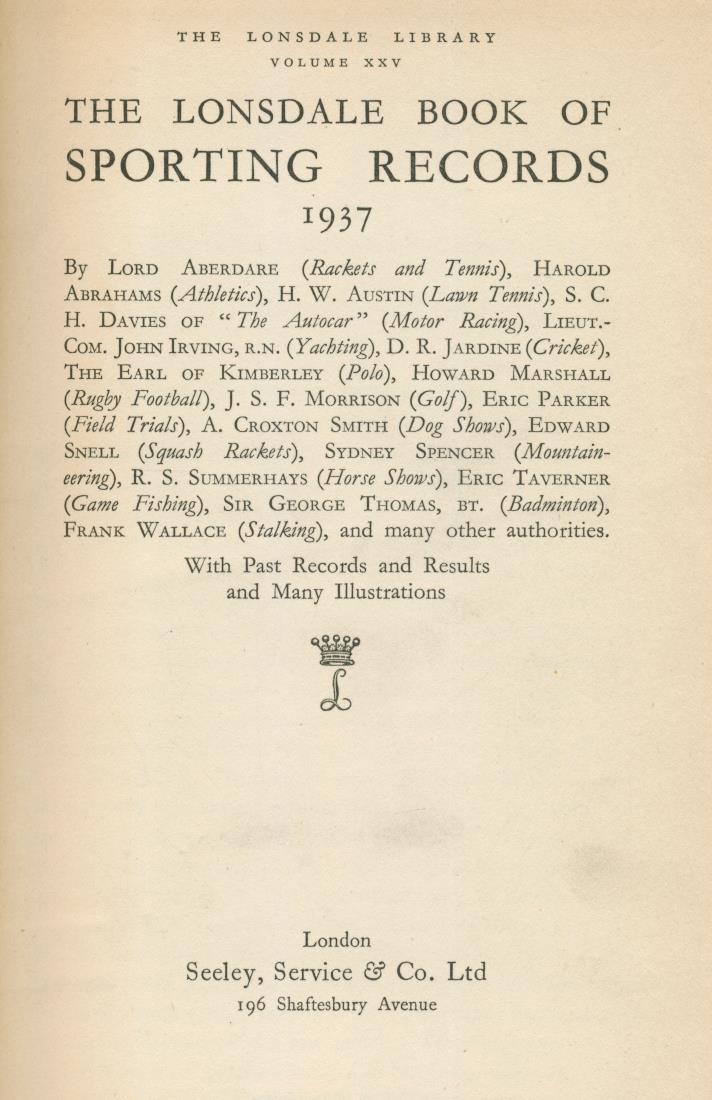 THE LONSDALE BOOK OF SPORTING RECORDS 1937