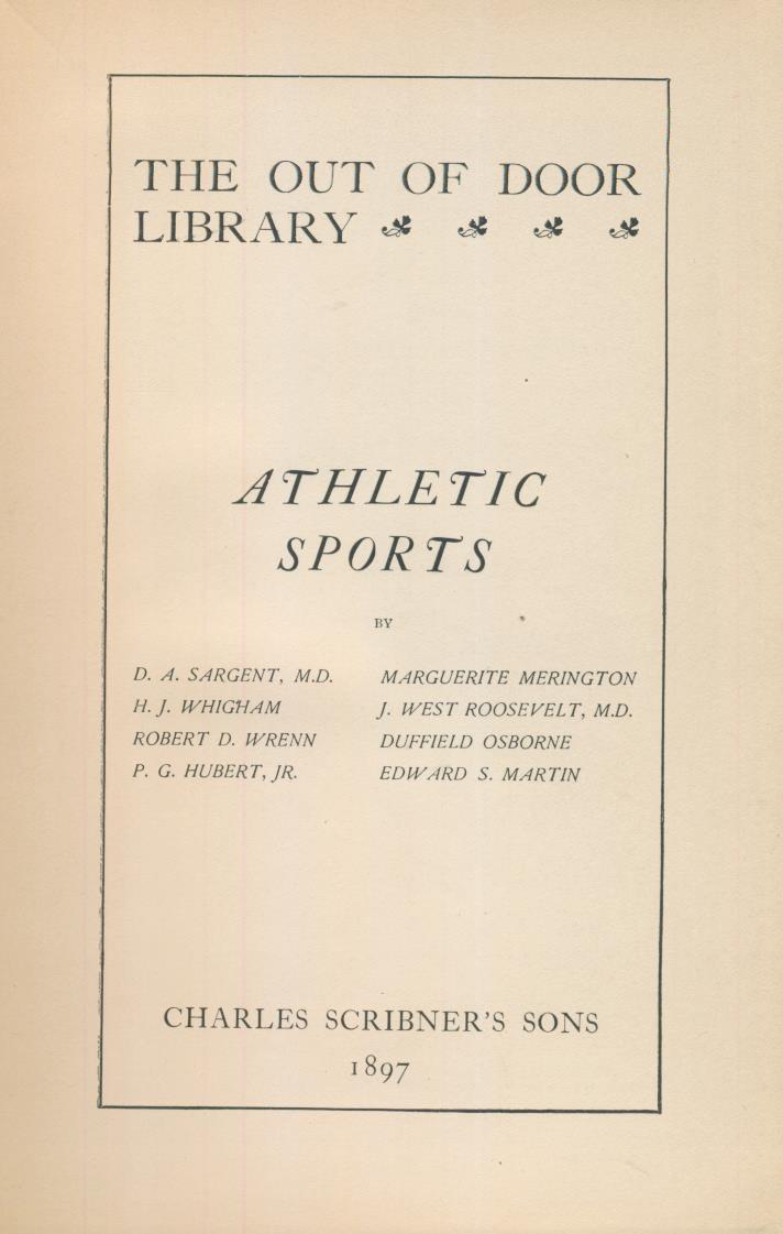 Includes chapters on athletics, golf, lawn tennis, cycling, surf and surf-bathing and hunting in America. Authors include H.J. Whigham (US Open Golf Champion in 1896), Robert D Wrenn (US Open Tennis Champion in 1896) and Duffield Osborne, who contributed the very interesting chapter on early surf-bathing (surfing without the board!). Contains many illustrations.