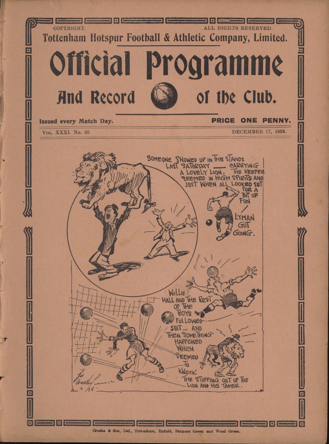 TOTTENHAM HOTSPUR V ARSENAL (RESERVES) 1938-39 FOOTBALL PROGRAMME