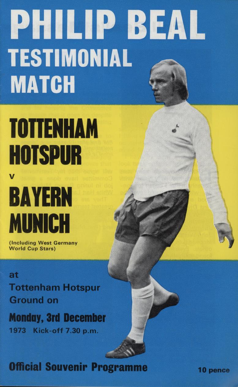 TOTTENHAM HOTSPUR V BAYERN MUNICH 1973-74 (PHILIP BEAL TESTIMONIAL) FOOTBALL PROGRAMME