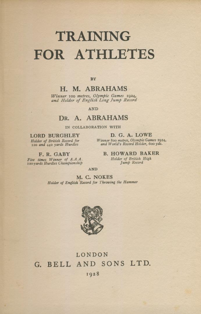 Athletics instructional book by Harold Abrahams and his older brother Adolphe, who is regarded as the founder of British sports science.
