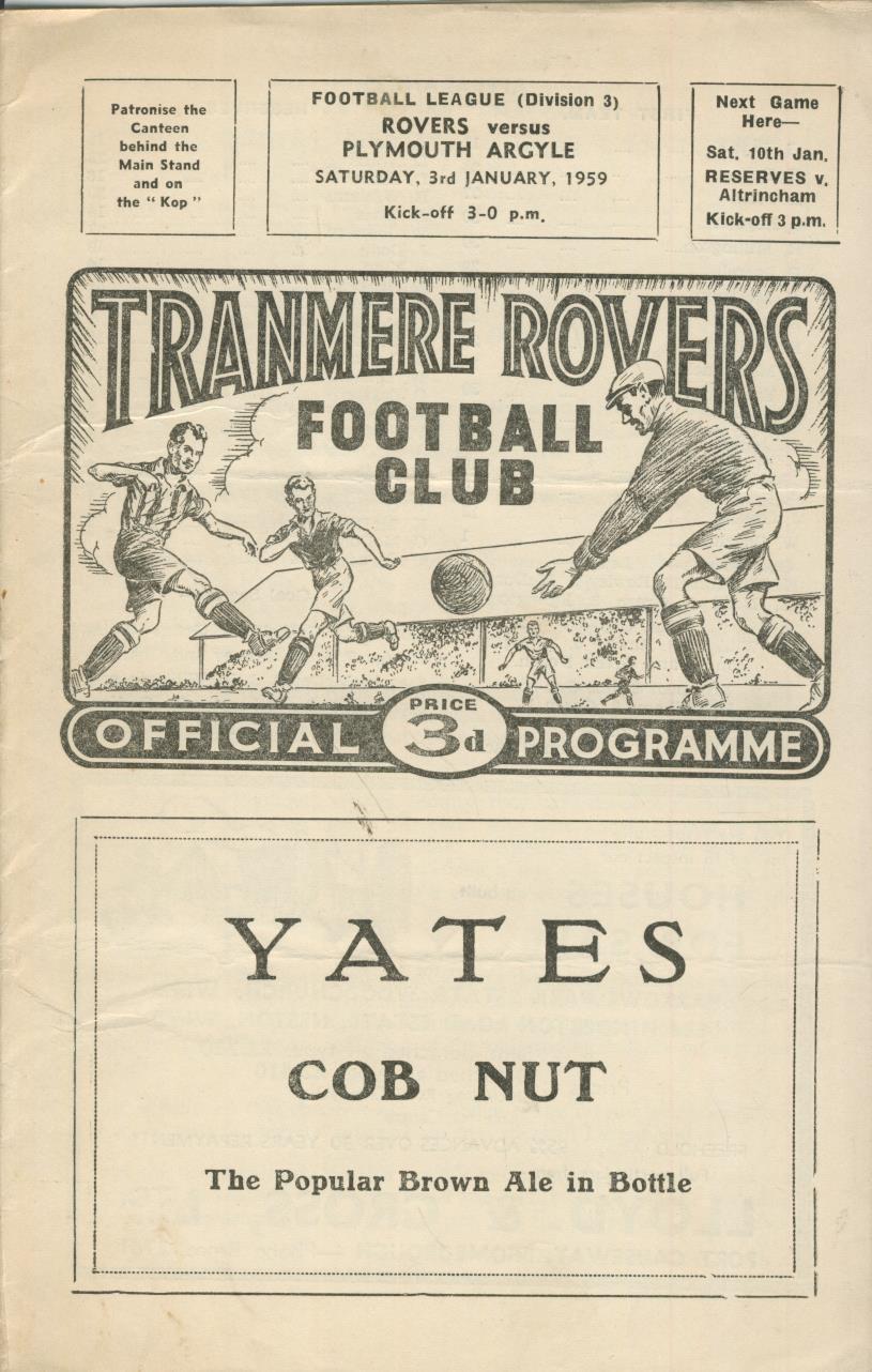 TRANMERE ROVERS V PLYMOUTH ARGYLE 1958-59 FOOTBALL PROGRAMME