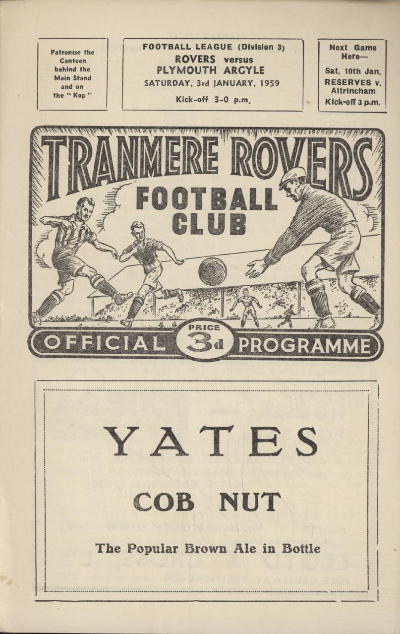 TRANMERE ROVERS V PLYMOUTH ARGYLE 1958-59 FOOTBALL PROGRAMME