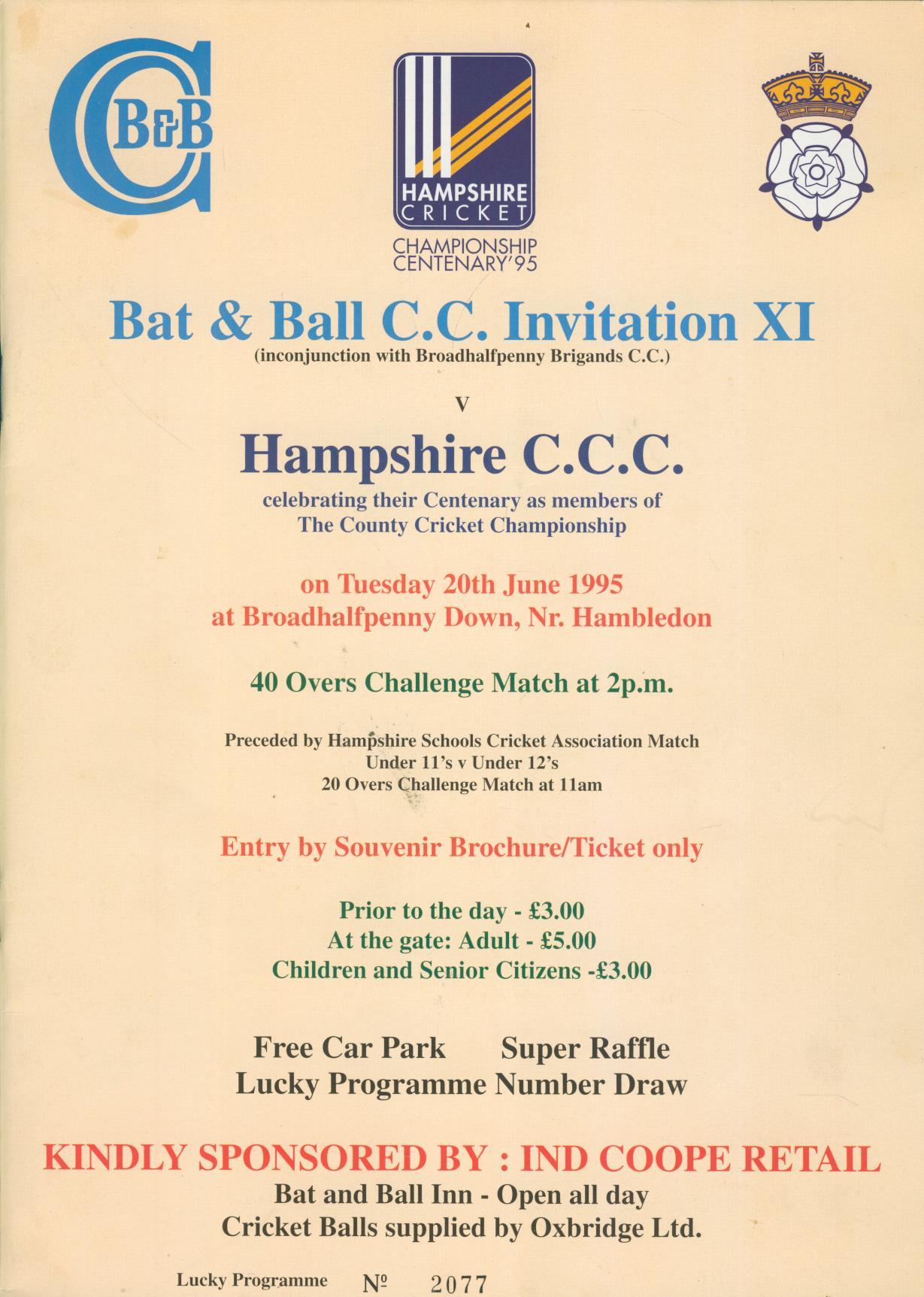 Cricket » Cricket Programmes » Other Cricket Matches » BAT AND BALL C.C. INVITATION XI V HAMPSHIRE C.C.C. 1995 (BROADHALFPENNY DOWN) CRICKET PROGRAMME