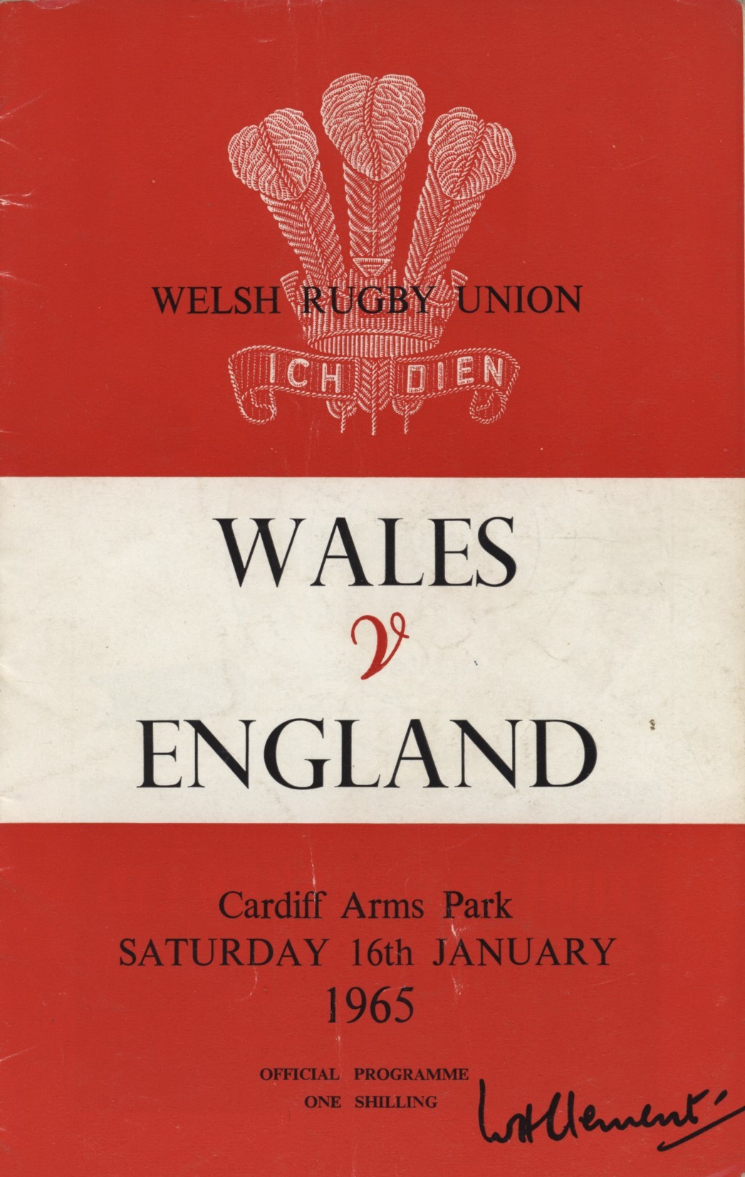 Official programme for the match at Cardiff Arms Park, 16 January 1965.