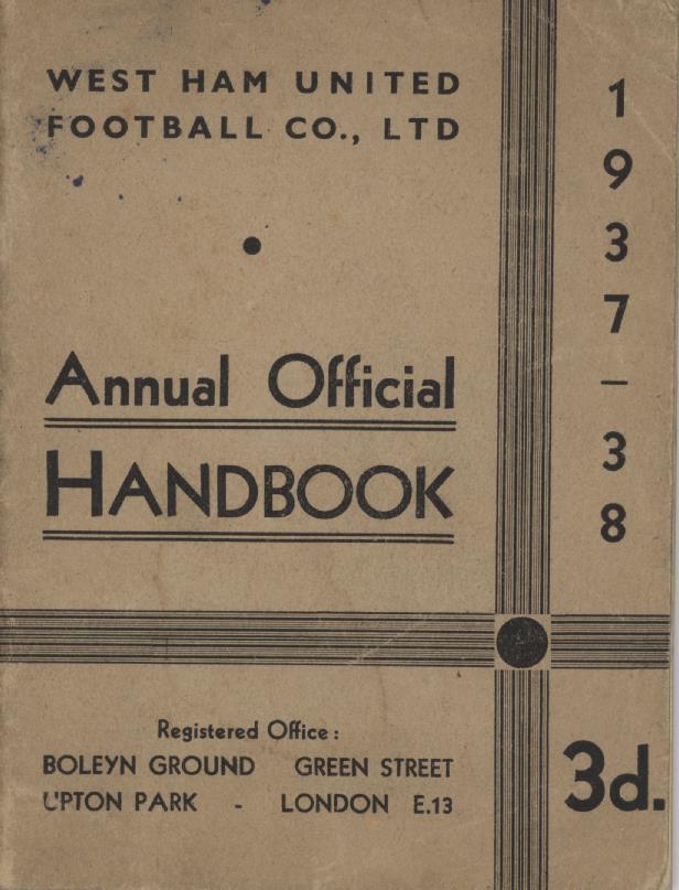 WEST HAM UNITED ANNUAL OFFICIAL HANDBOOK 1937-38