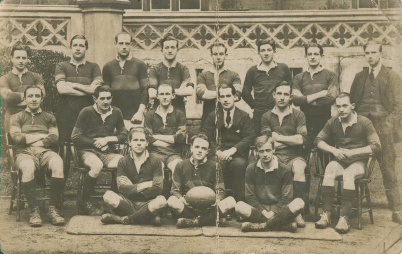 Postcard of the Westminster College rugby team, probably taken in the 1920s. Westminster College was a Methodist training college in Horseferry Road, London, but moved to Oxford in 1959 and finally closed in 2000.