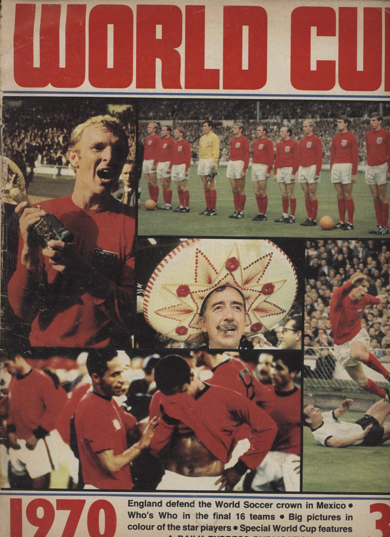 Glossy newspaper supplement previewing the Mexico World Cup of 1970, with profiles of England players and features on other teams in contention.